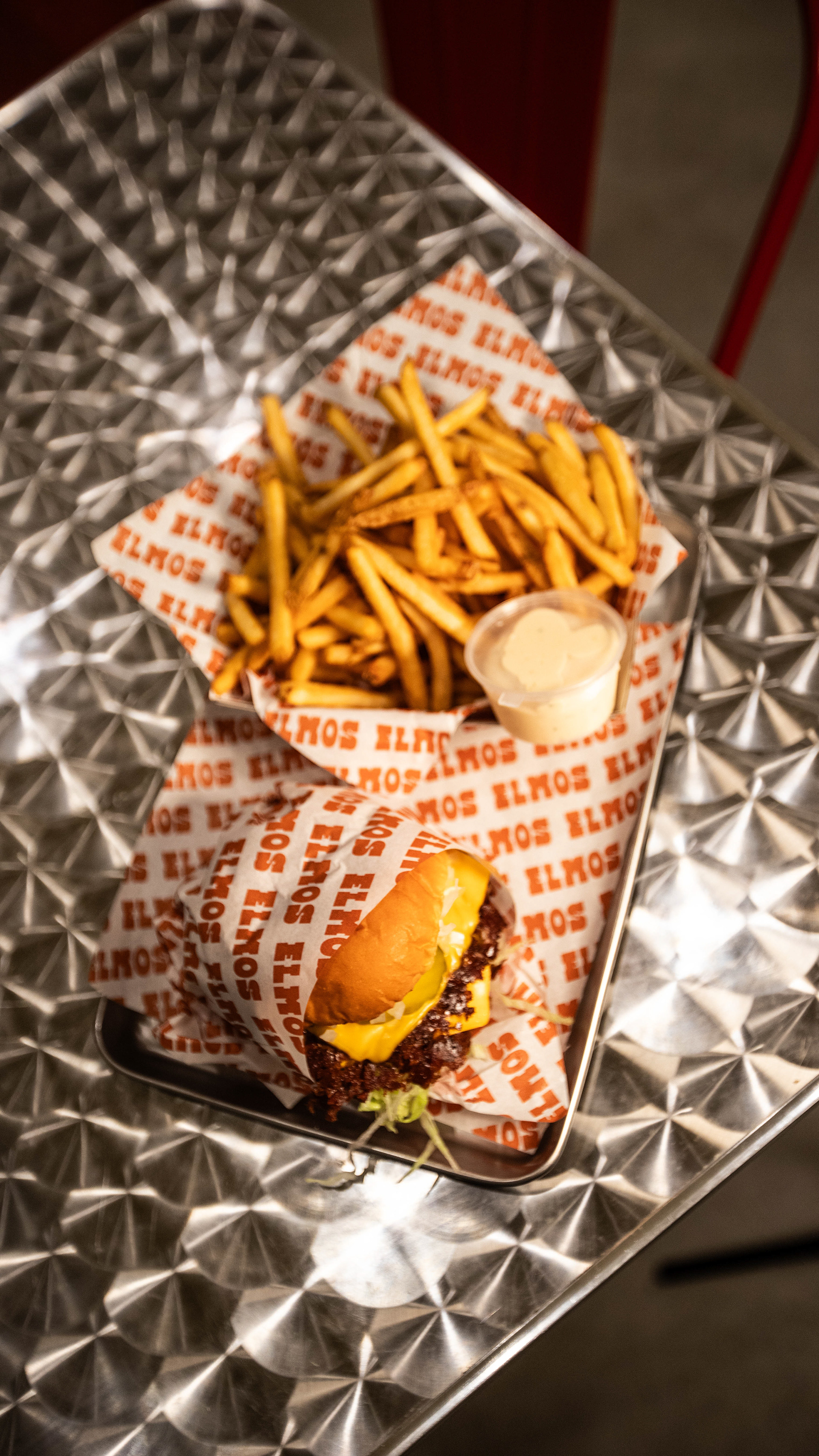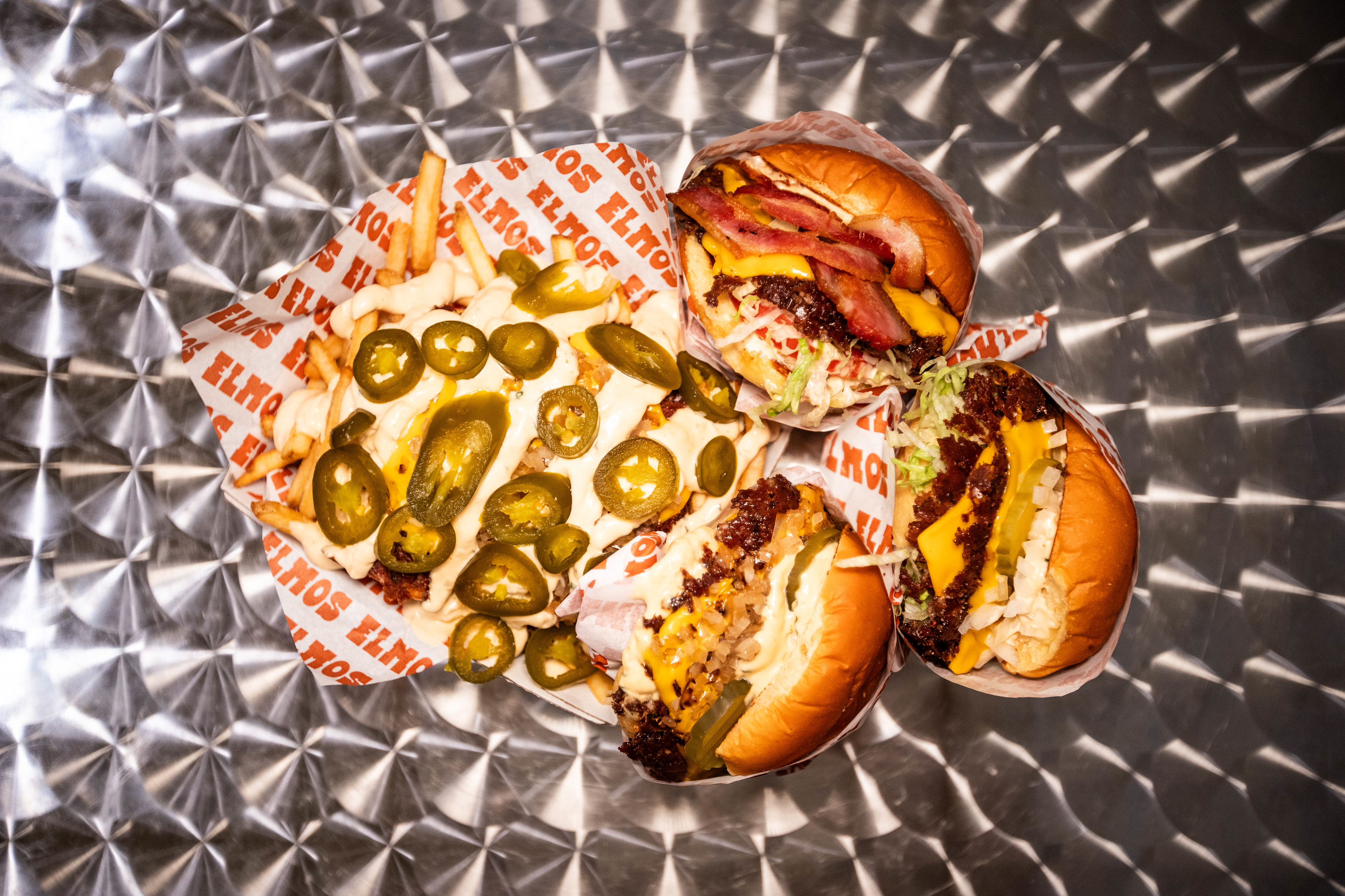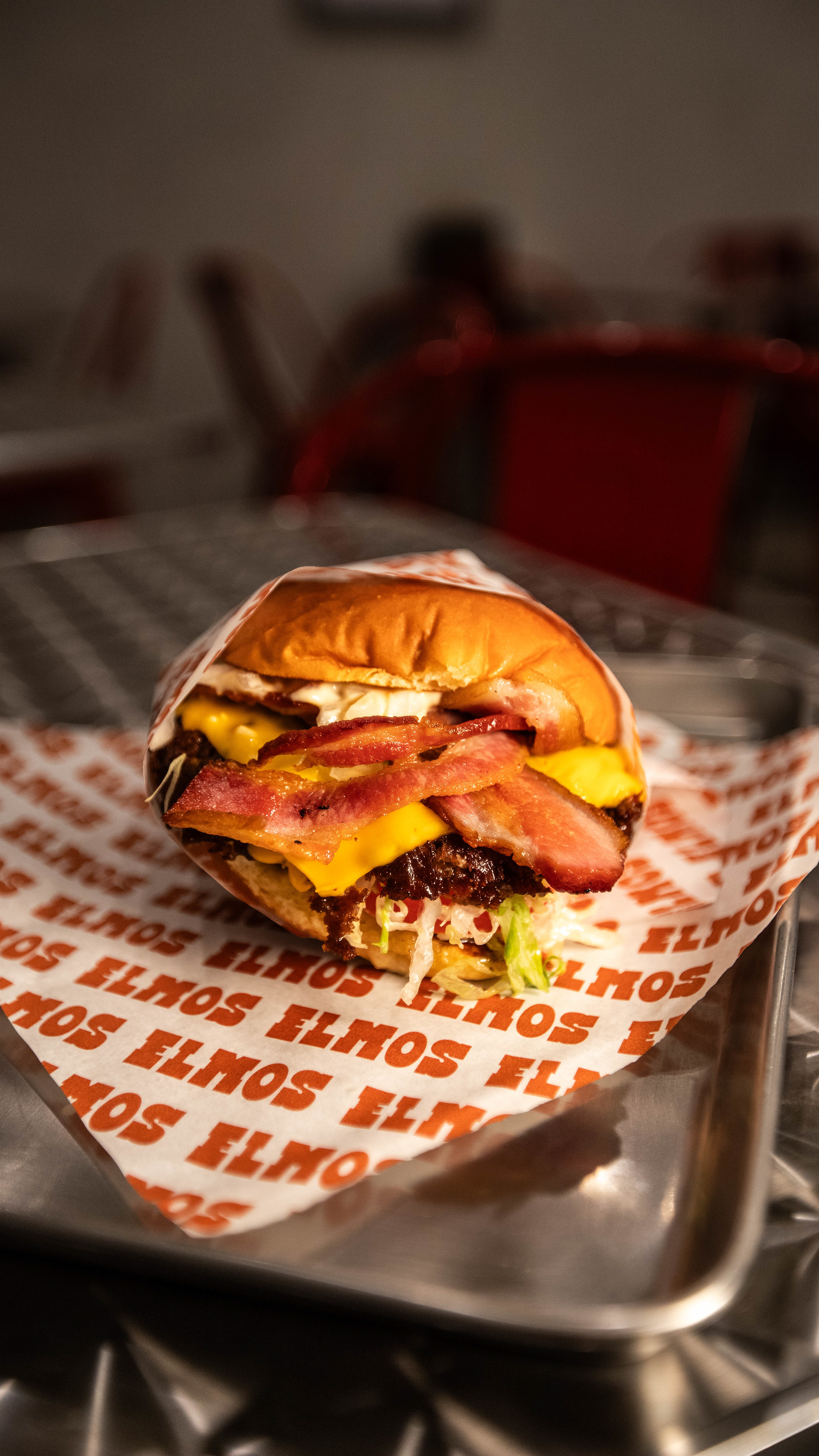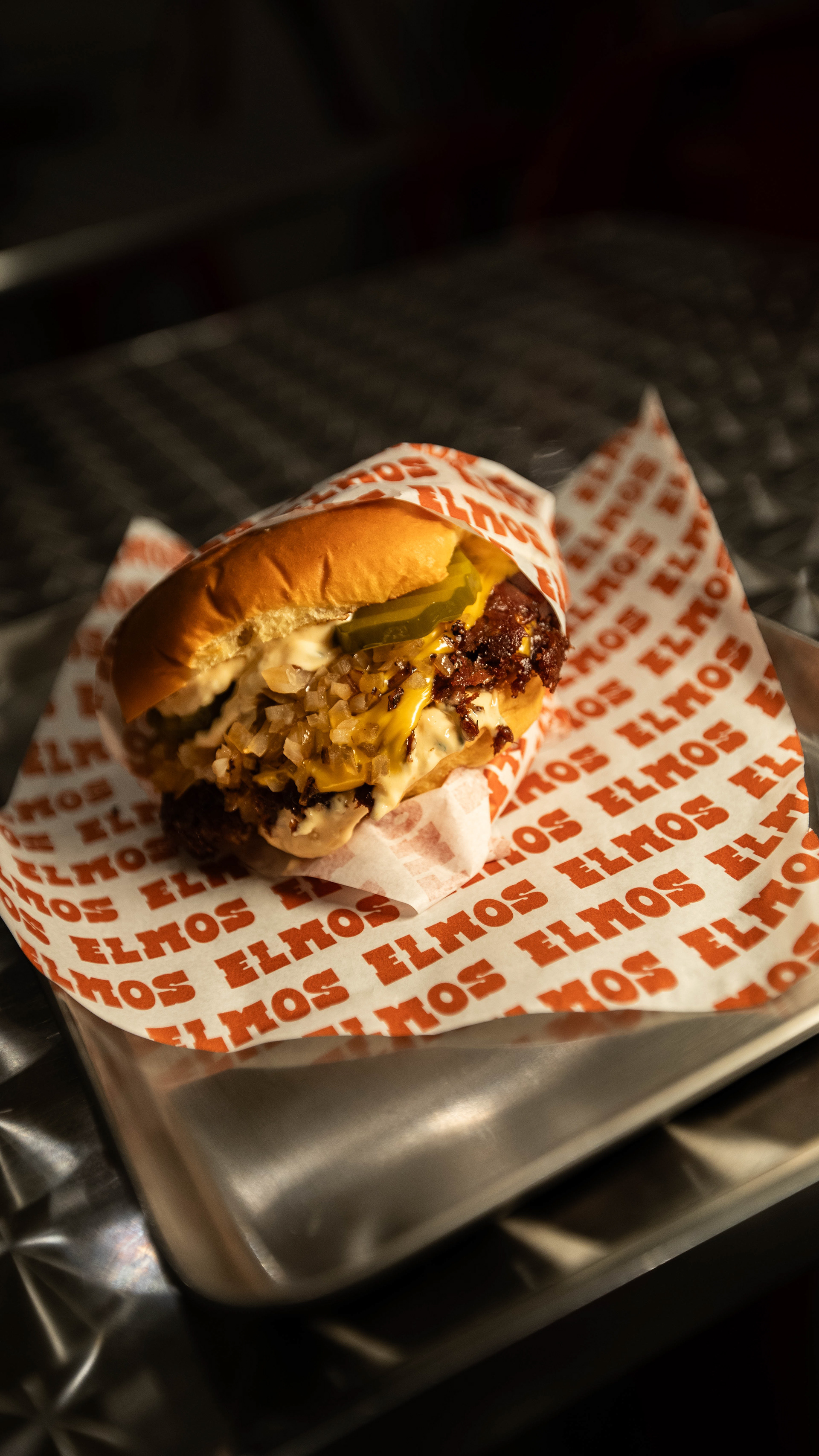 4.9* rated independent burger venue. Catalogueing their menu for use on their uber eats page, shot using limited equipment and small store bought pop up studio + 1 external light and 2 speedlights for group shot (uber eats header)